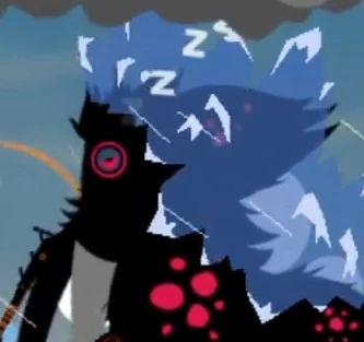 Shookle/Shukuru aturdido por los rayos. Los jefes aturdidos sueltan objetos.