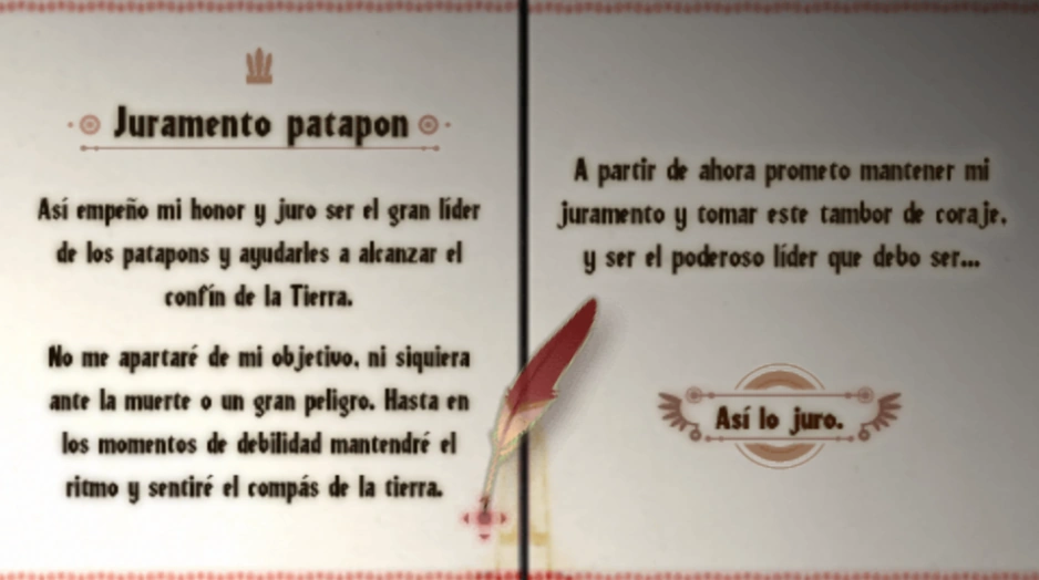"Así empeño mi honor y juro ser el gran líder de los Patapons y ayudarles a alcanzar el Confín de la Tierra.