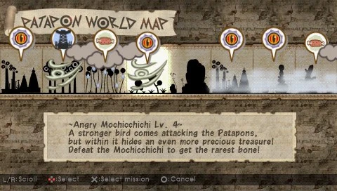 When Mochichichi falls, you'll get its egg for the Patagate. Going after its masks is a recommended action, as the HP boost can definitely aid your Hero in the upcoming battles. After level 10 Mochichichi learns a new attack: he sits in the ground and he spins like a tornado. This attack is very dangerous so your only hope is that you have the PonPata song or there will be trouble.