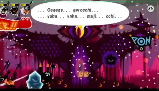 Dark One will try to support Bababaan by throwing his spear, which can freeze the Patapons for a moment. He's not very tough, but Bababaan can revive him in a matter of seconds! Focus on the gate itself, since Dark One is essentially immortal (he will probably end up respawning a few times anyways, just from the extra flak that misses Bababaan).