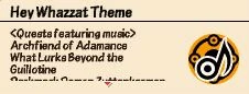Hey Whazzat Theme is a theme heard in only Patapon 2 and Patapon 3. It is known for being Dettankarmen and Zuttankarmen's theme. If you listen closely, it has a heartbeat rhythm every 4 beats, although it stops when you get close to fever, and once more as you reach fever.