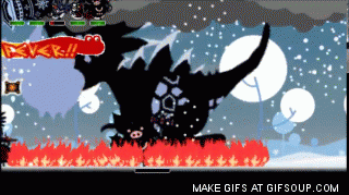 This attack is the same as the other land dragons; Kacchindonga lowers its head and raises its haunches before swinging its head upward, attempting to consume an unlucky Patapon victim. Hero or Uberhero lost in this manner will not be able to be revived. If you retreat or jump, the attack will most likely miss. Even defending or charging up might work if Hatapon's far away.