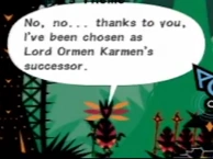 When encountered, Hukmen thanks you for killing the other Karmen Generals, saying that he is now the only successor to Ormen Karmen. Unfortunately, he still isn't going to move, so you have to engage him in battle.
