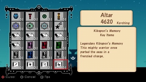 Unlike Yaripons and Toripons, who throw their spears, Kibapons use their weapons at melee range by having their steeds charge into battle. Initially, they only travel a short distance from Hatapon, but they can travel much further when they enter Fever Mode; this also increases their defense and allows them to continuously damage any enemy they touch (the latter pairs nicely with status effects like Stagger or Freeze). Their charging attacks allow them to move in and out of enemy attack range to some extent, also forcing incoming foes to back off and collecting distant resources and equipment. Their defensive action (via Chaka Chaka) has them perform a short charge with their lances; coupled with Fever Mode and Tatepon defenses, this allows them to be as effective on defense as they are on offense.