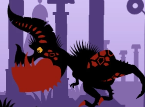 Majidonga is a Land Dragon (different from Winged Dragons and Puppy Dragons) with black and red colored skin. It has a large horn, a squarish jaw, hairs on it's back and neck and over its eyes, and it is bigger and more powerful than Dodonga, with whom it shares all its moves. However, it dwarfs in comparison with Kacchindonga (Patapon 2, Patapon 3), the strongest of the three Dongas (not counting the Accursed Dodonga).