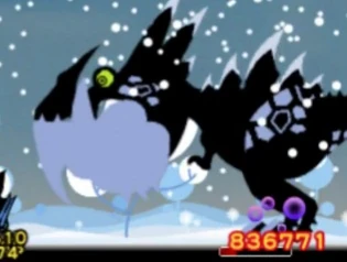 In Patapon 1, bosses were immune to knockback. In Patapon 2 some of the bosses could be temporarily knocked down for few seconds. In Patapon 3 it was changed, so that knockback literally sends bosses flying like small enemies.