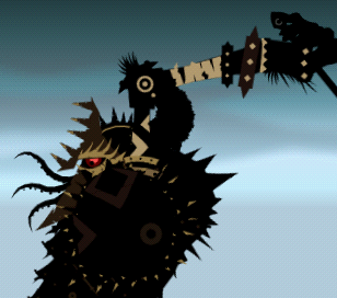 Terantus will rise up and lift his axe high into the sky. The camera will follow him and stay fixed on his face and arm for about 4 beats, which will give you just enough time to strike one command. He will then smash his axe down onto your army. If you're far enough away, you can dodge this via PonPata, but due to the size of his axe, this is unlikely. Defend with ChakaChaka at all cost. If your units have good equipment and defense, this attack doesn´t really deal much damage, so just defend or use DonChaka to prevent the stagger or knockback.